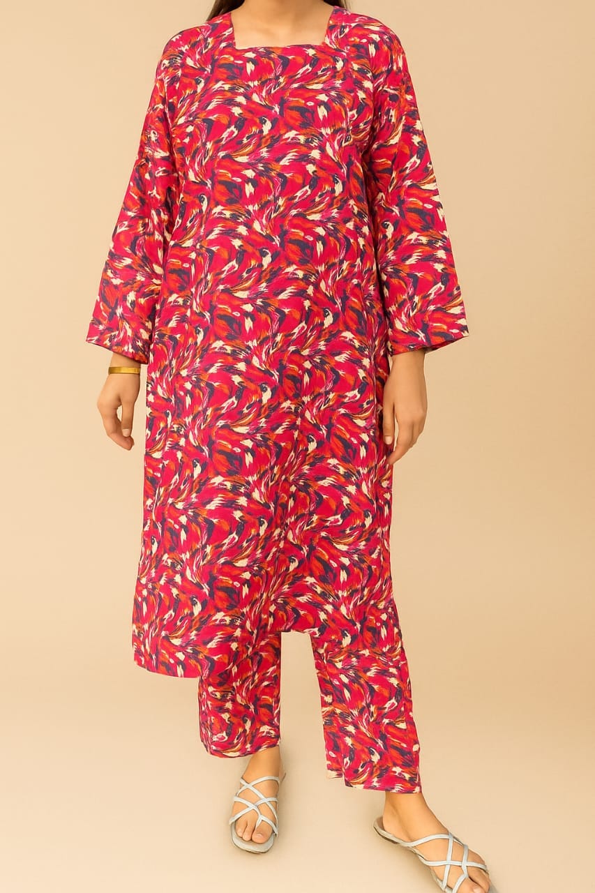 Pink 2-piece stitched set in Bana Doria — bright & feminine casual wear.