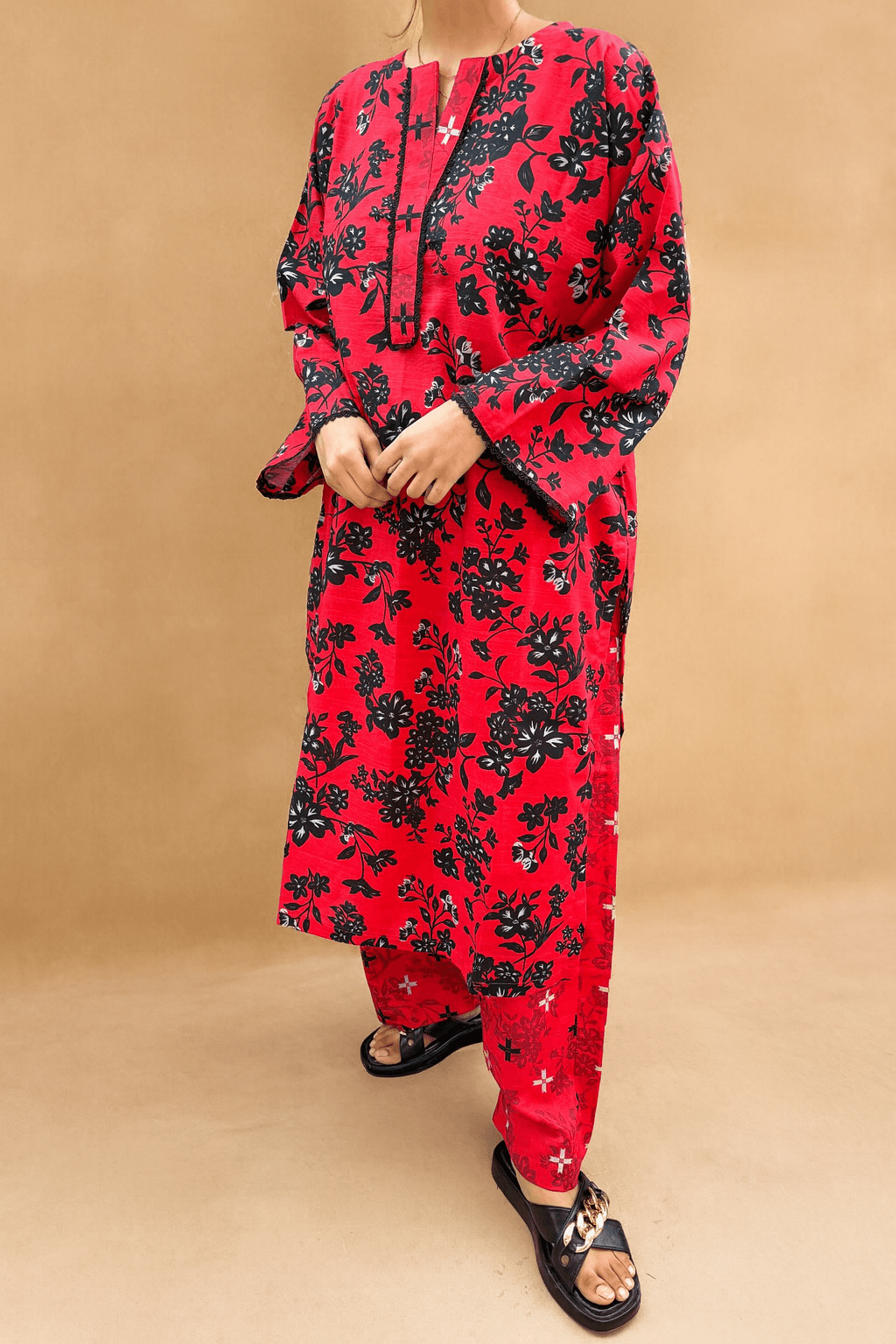 Cozy Red — Printed Khaddar 2-Piece Stitched Set