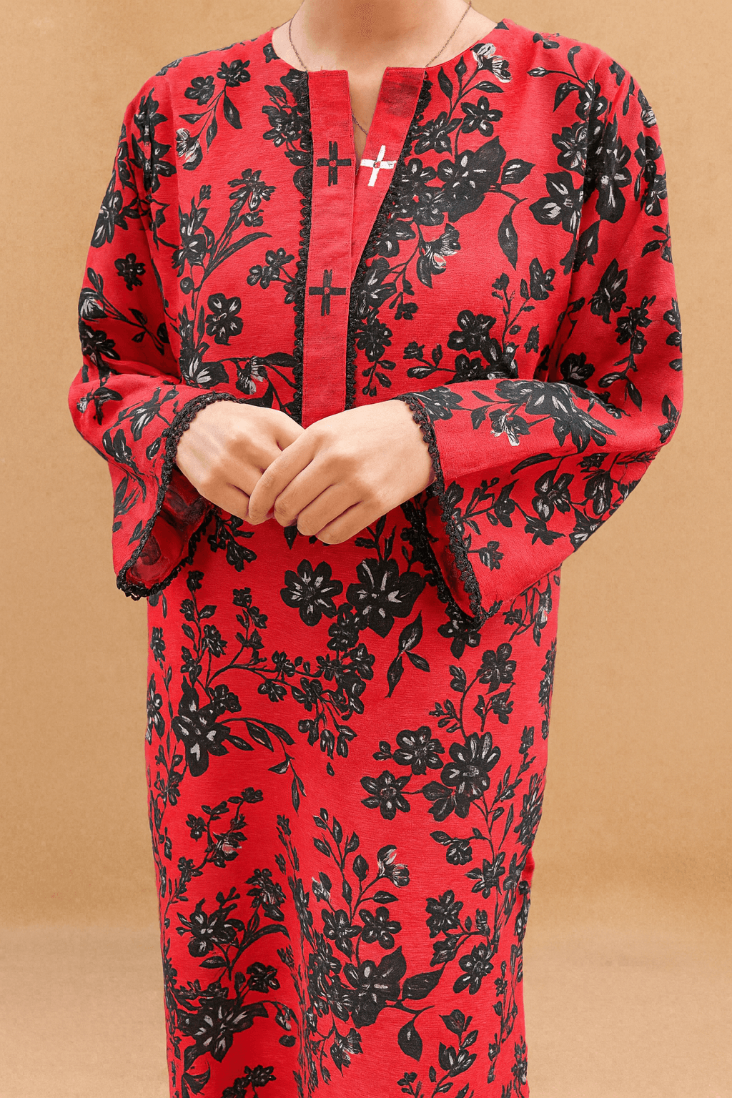 Cozy Red n Black — Printed Khaddar 2-Piece Stitched Suit